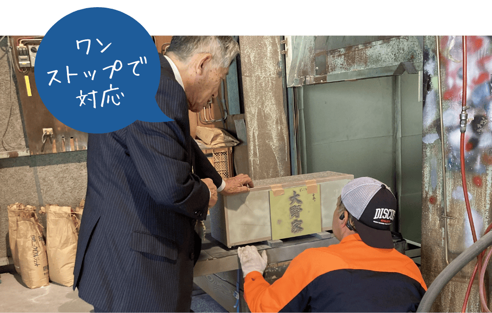 お墓づくりの全工程を設計・加工・施工・アフターケアまでワンストップで対応。外部業者に委託しないから、お客様の希望を細かく反映しやすく、安心の品質をお届けできます。