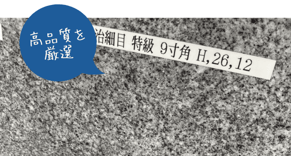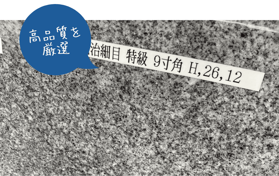 最高品質の国産石材を厳選し、産地直送でお届けします。滝根石・庵治石・大島石・万成石・本小松石など日本各地の銘石を取り扱い、お客様の理想のお墓を実現します。