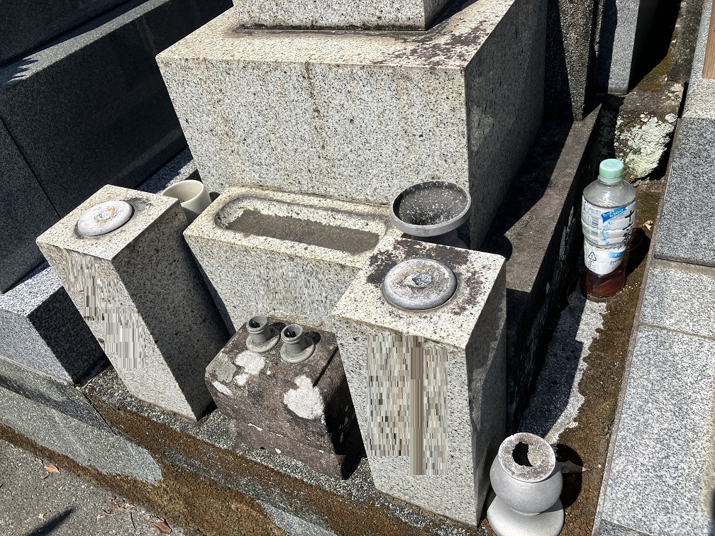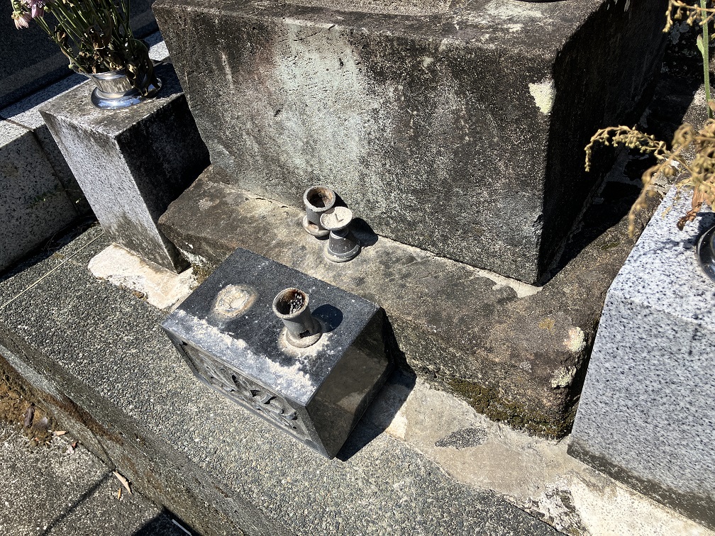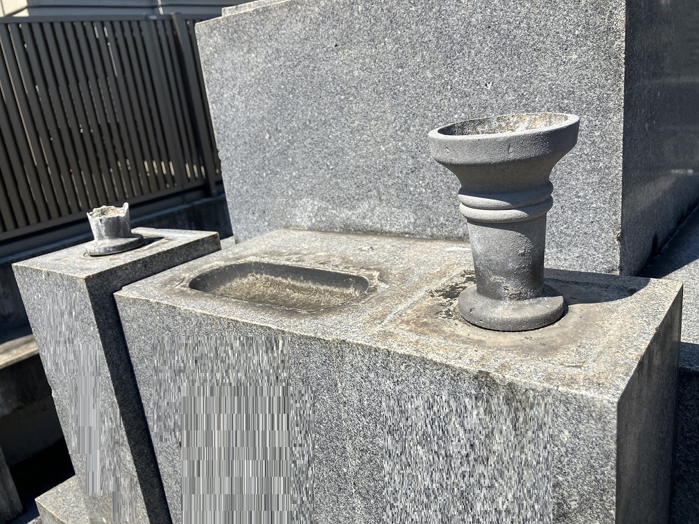 お墓の不具合ですね。特に花立と線香立が壊れていると目につきます。