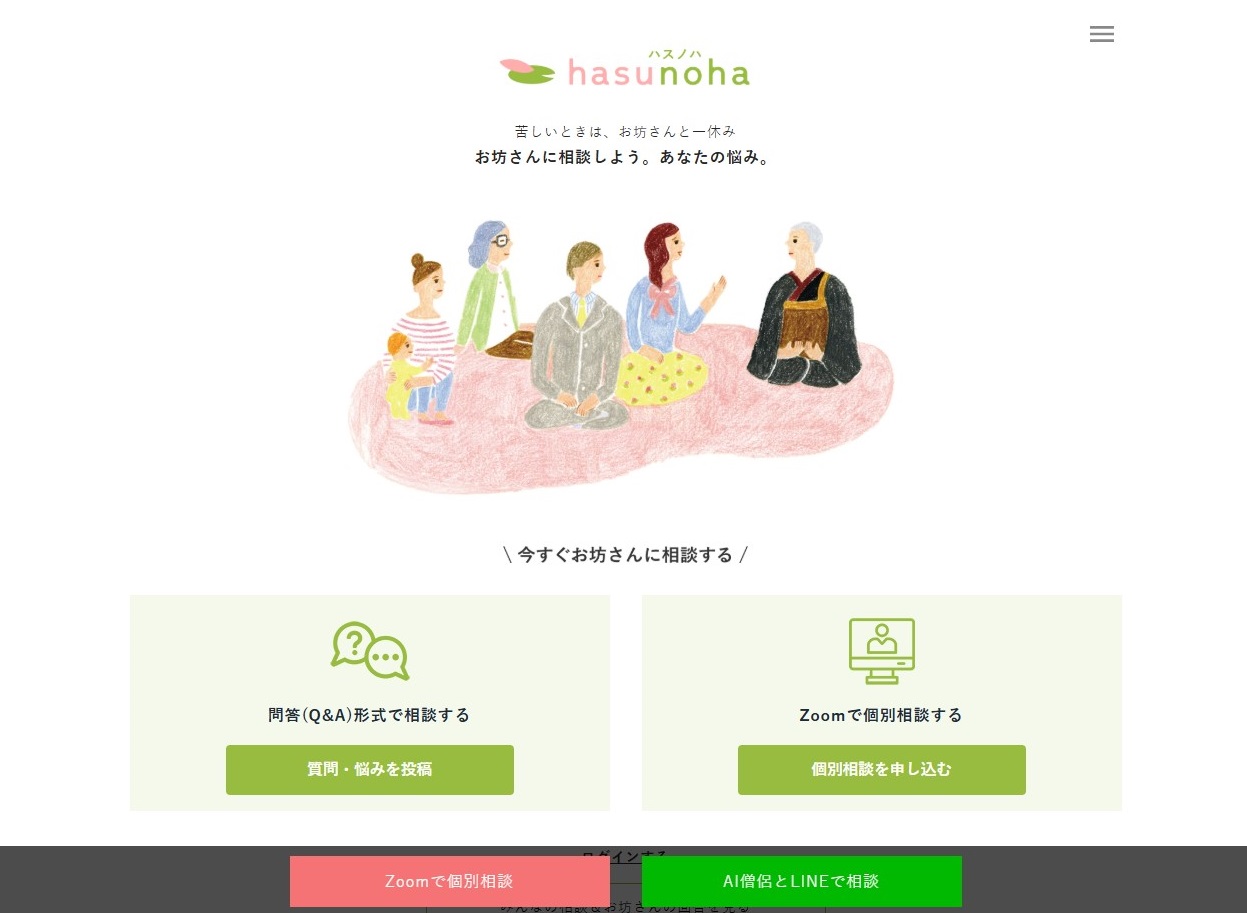 331名(2025年10月現在)のお坊さんが登録している「ハスノハ hasunoha」というサイトがあります。