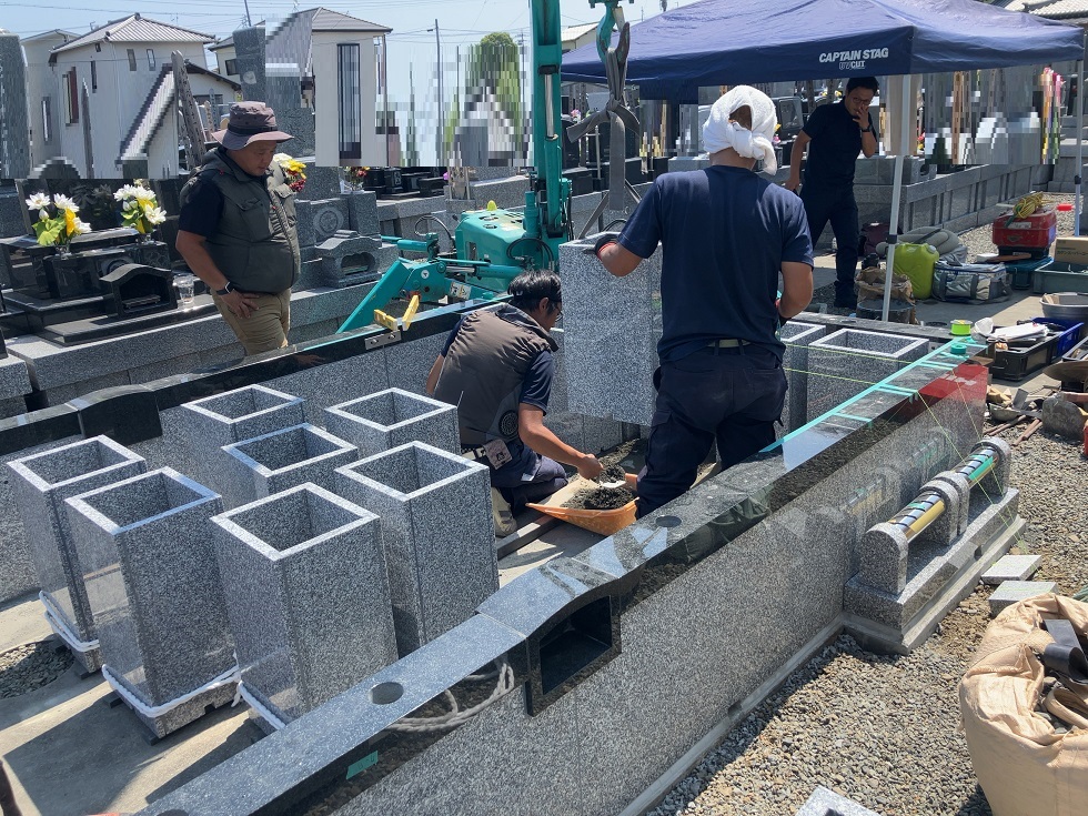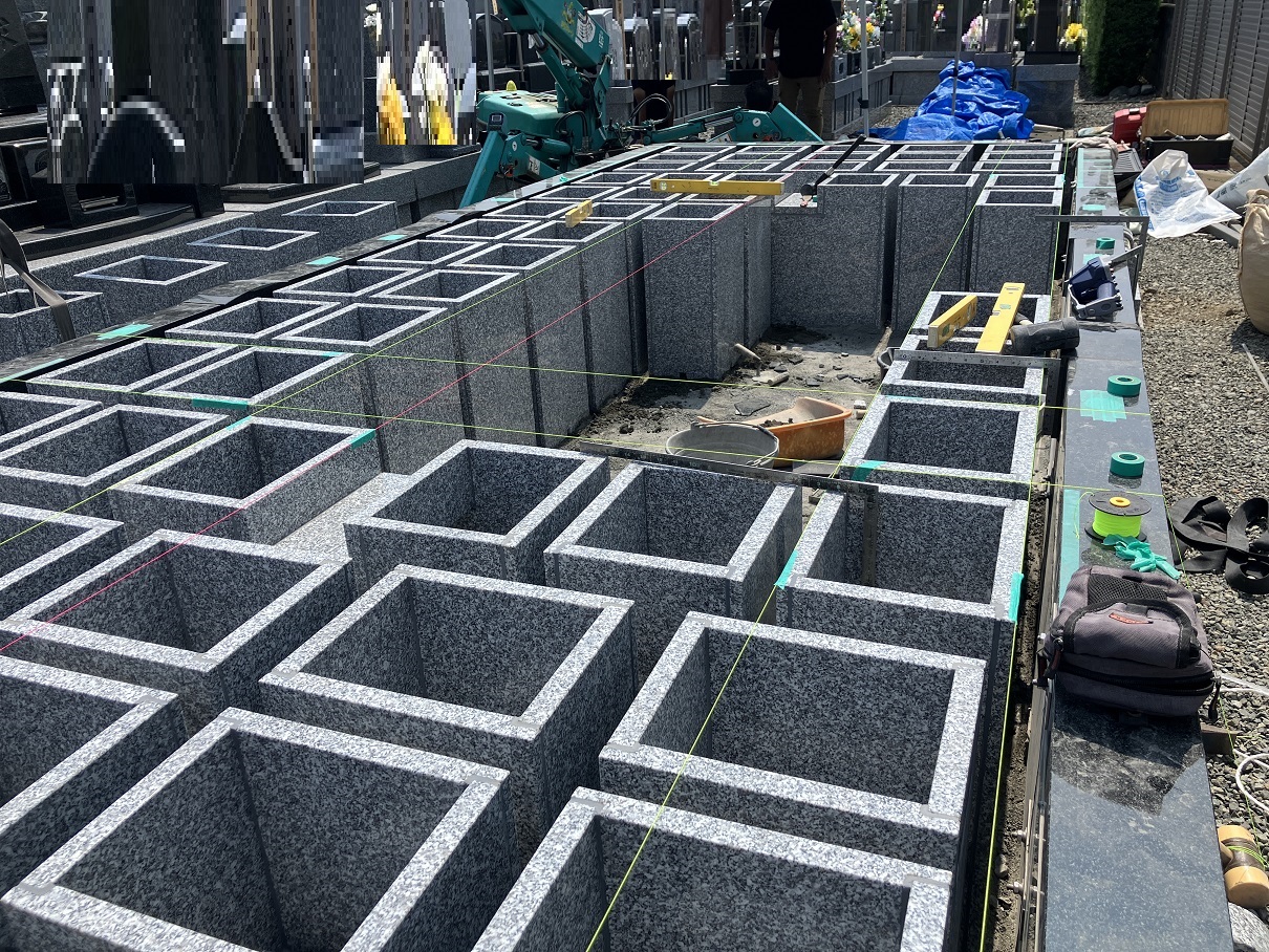 あとはお寺さんの方で土を入れるようです。檀家さんには「お彼岸頃には完成します」と伝えているようでしたので、順調に完成できてよかったです。