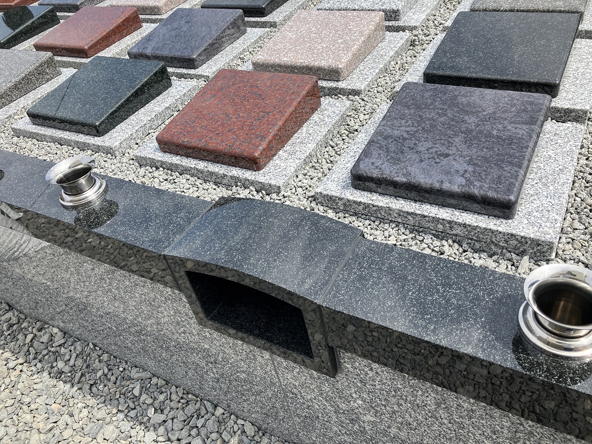 など色とりどりです。「檀家の皆さんが好きな色でお墓を選んでくれたら良いな」というイメージでしょう。