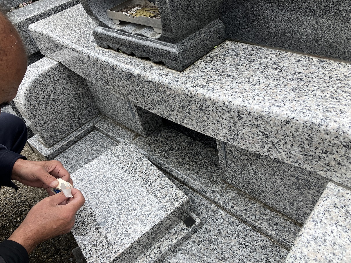 お骨を出したのち、沼上霊園にあるお墓に納骨しました。