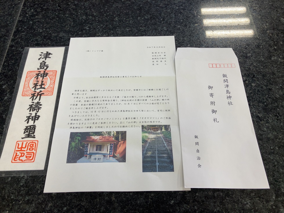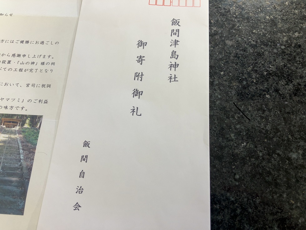 弊社の氏神になる神社に、ささやかながら寄付をさせていただきました。