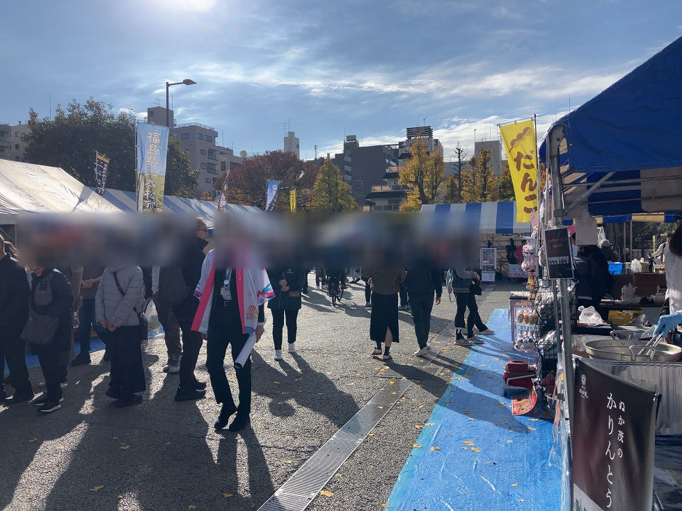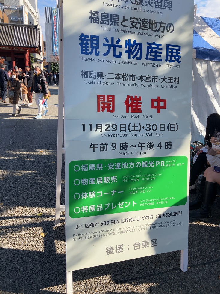 一緒に展示ブースの店番をする遠藤は、福島県本宮市の商工会に入っているため、交通費と宿泊費は負担していただいていますが、静岡から来ている自分はイシフクの経費でこちらに来ています。