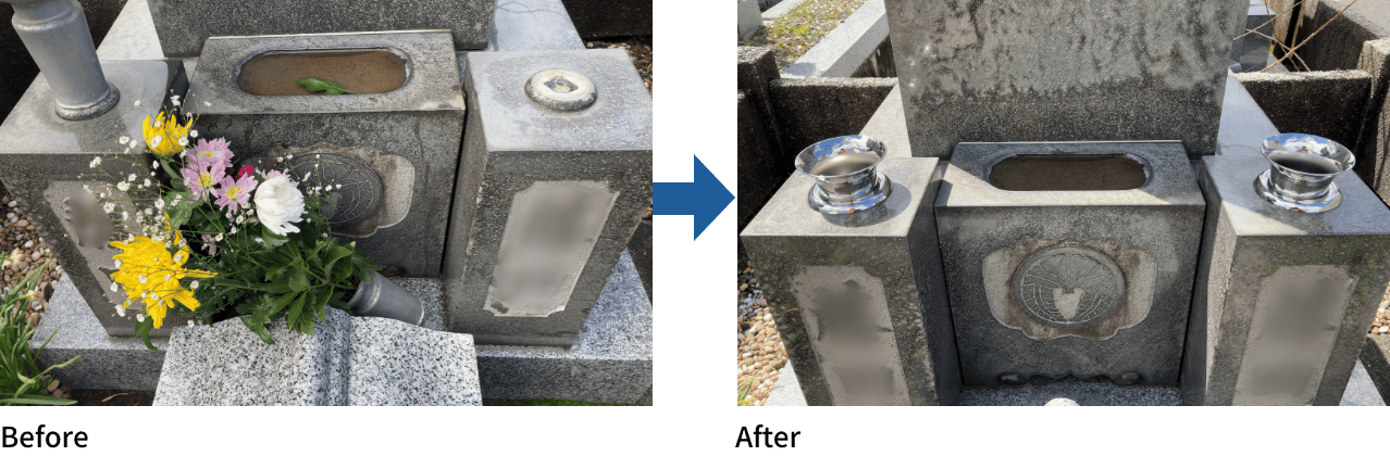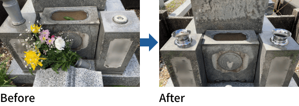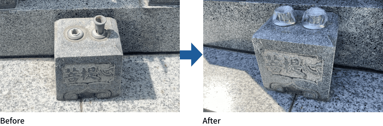 従来の固定式の花立を、取り外して洗える清掃しやすいタイプに交換。いつでも清潔に保てます。