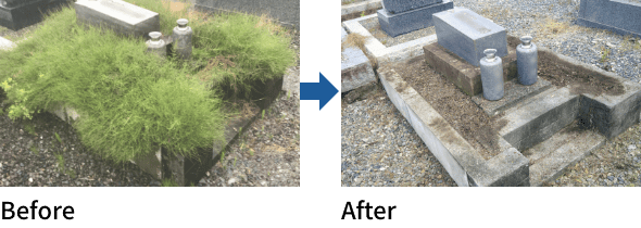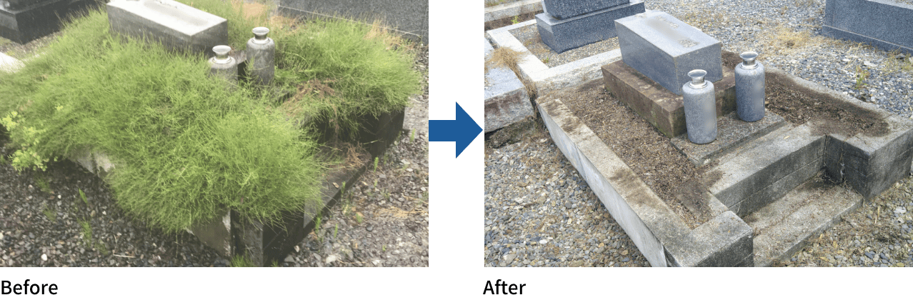 墓地内に生える雑草を防ぐために、環境に配慮した除草剤を定期的に散布。お手入れの負担を軽減します。