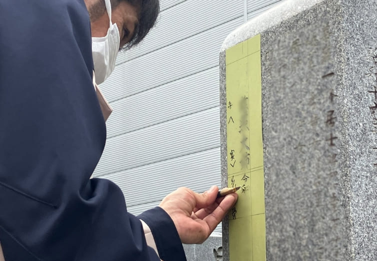 イシフクでは、熟練の技術で、既存のお墓のデザインや文字の書体に合わせた自然な仕上がりを実現します。