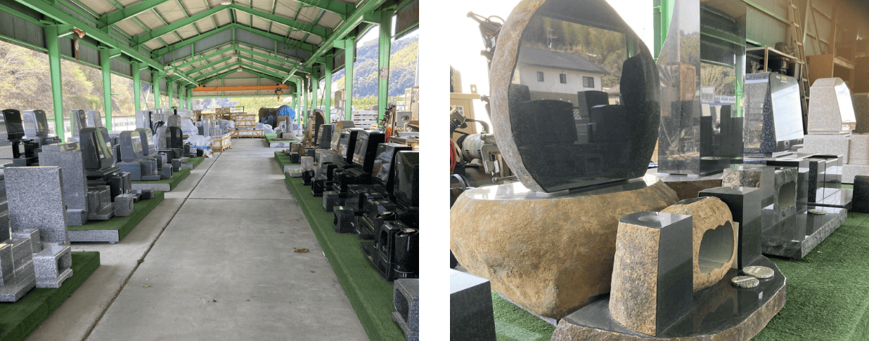 伝統的な和型墓石・モダンな洋型墓石・個性的なデザイン墓石など、多彩なラインナップを展示。
