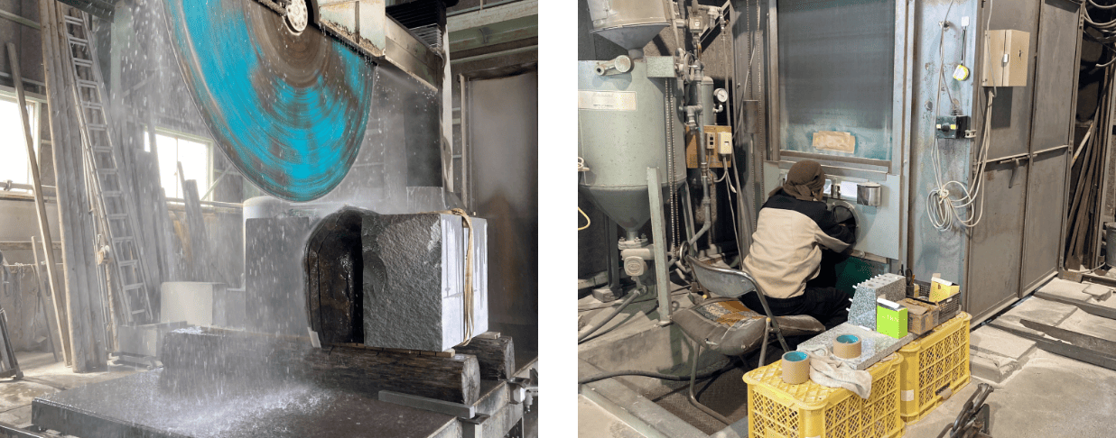 工場内では、石の切断や彫刻、穴あけといった加工の様子をご見学いただけます。