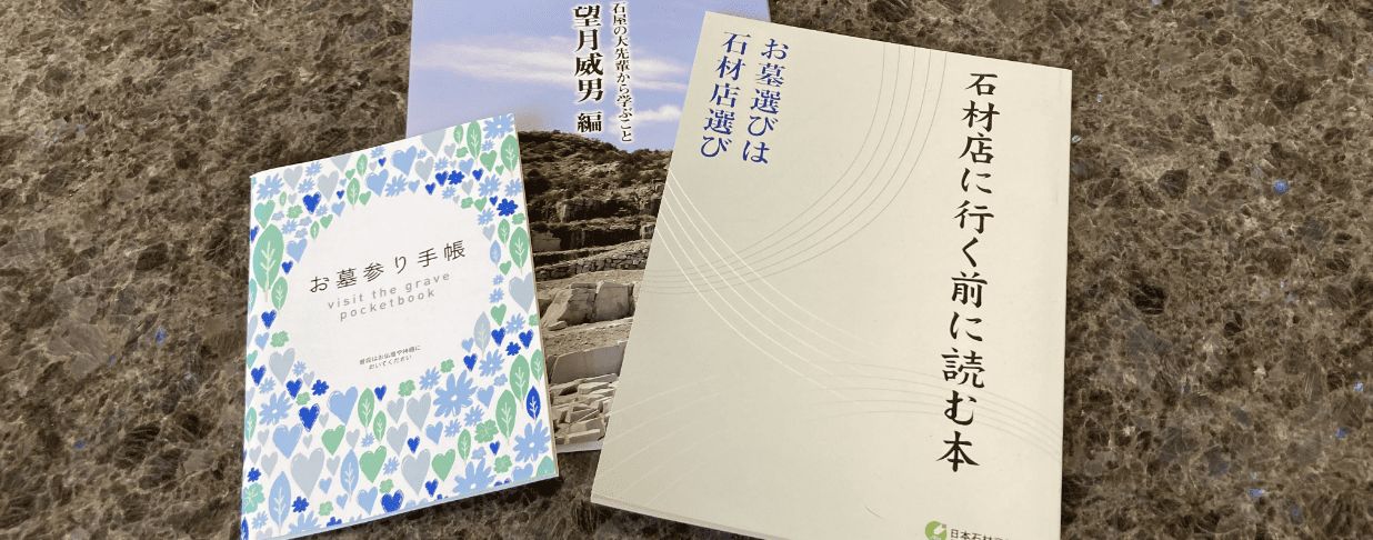 石の魅力やお墓選びについての本もご用意しております。応接間でゆっくりとご覧いただけます。