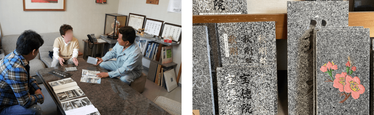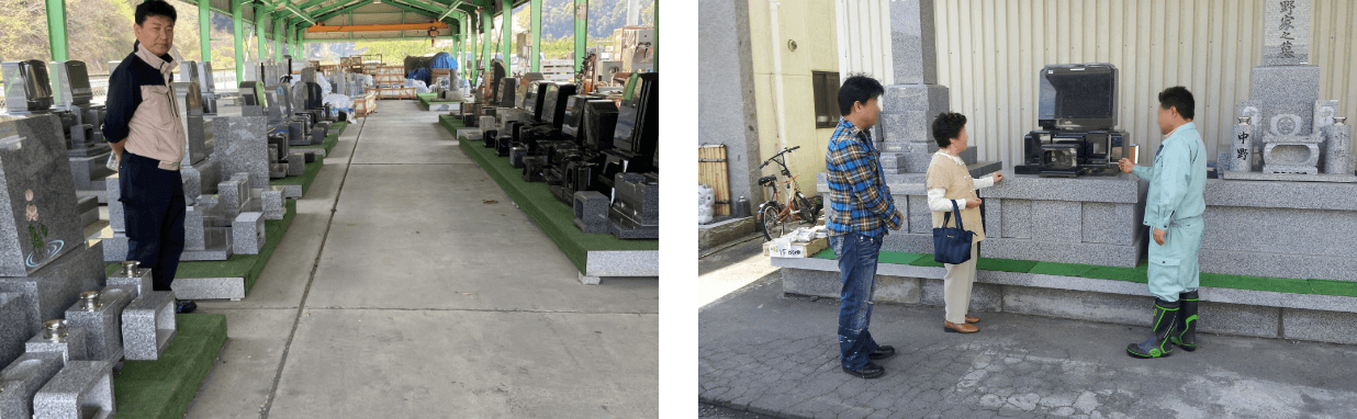 「どんなお墓がいいかわからない」 → 石の種類やデザインを実際に見て比較